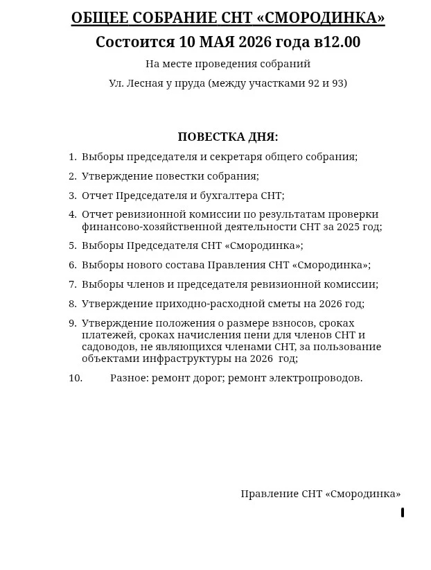Садоводческое Некоммерческое Товарищество "Смородинка" д.Верховье, Калужская область, Жуковский район. ДИСПЕТЧЕР Жуковского района:.............. 8-484-32-56205
